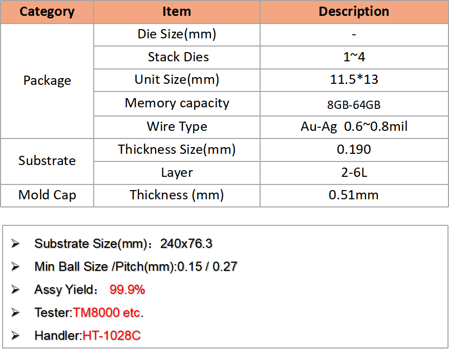 公司憑借先進設備、嚴格工藝控制和全流程服務,可為客戶提供高可靠Memory芯片封測解決方案。
